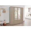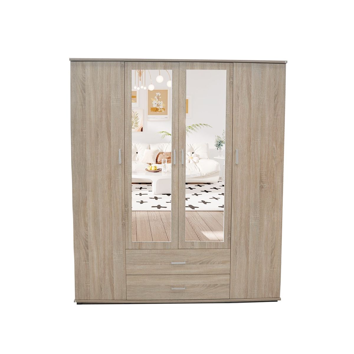 Interiax Kledingkast 'Lena' – 4 Deuren, 2 Lades, 1 Hanger, 2 Spiegels & 7 Legplanken | Sonoma Eik | 185x160x52cm