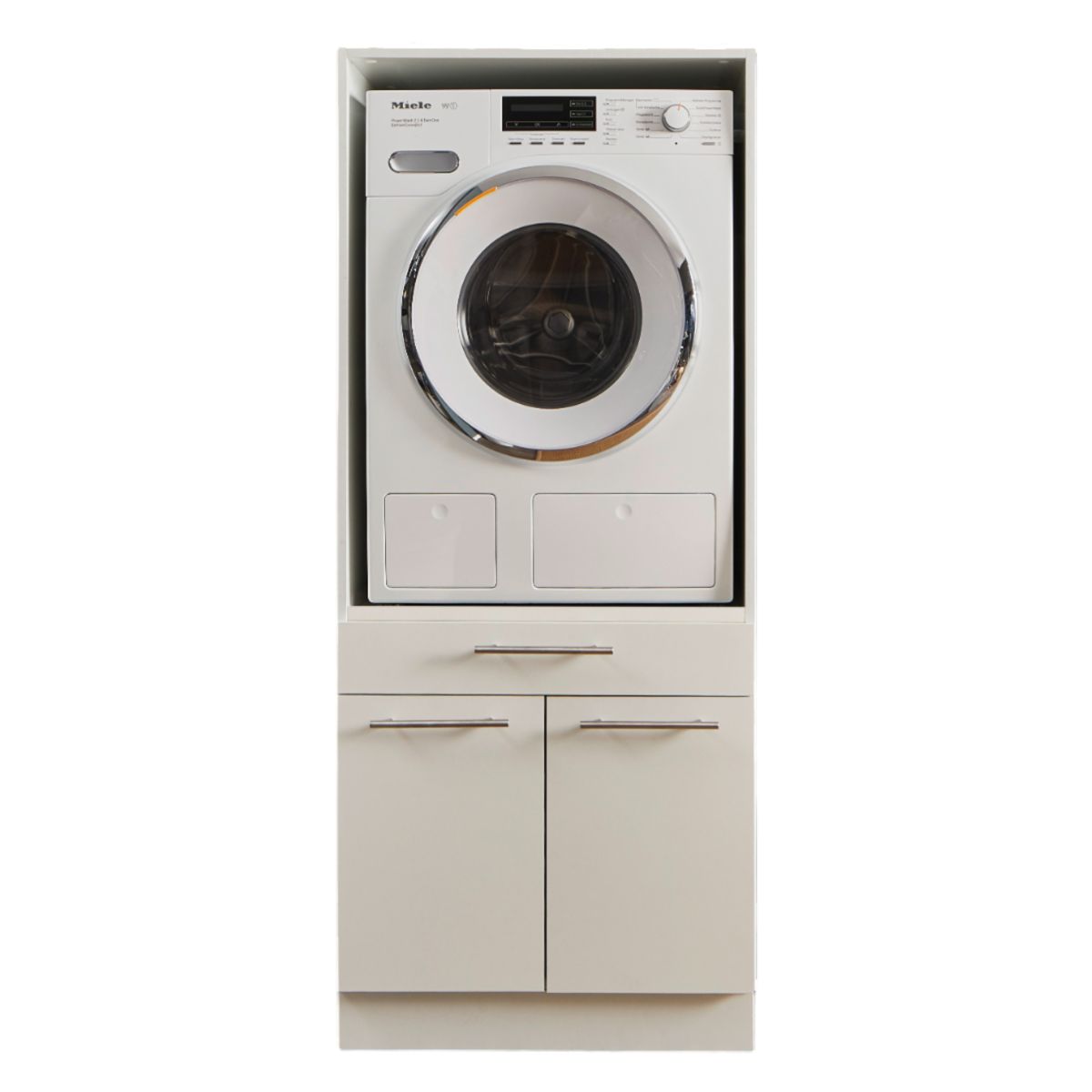 Was- en droogkast op comfortabele werkhoogte: Plaats je apparaten op een ergonomische hoogte voor eenvoudig vullen en legen.