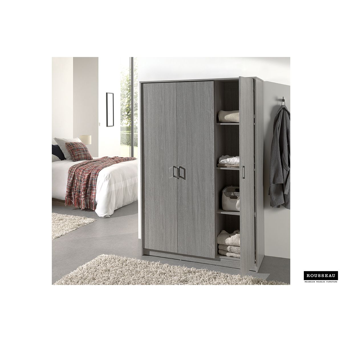 Kleerkast 'Ray' 3 Doors Grijze Eik (180x120x54cm)