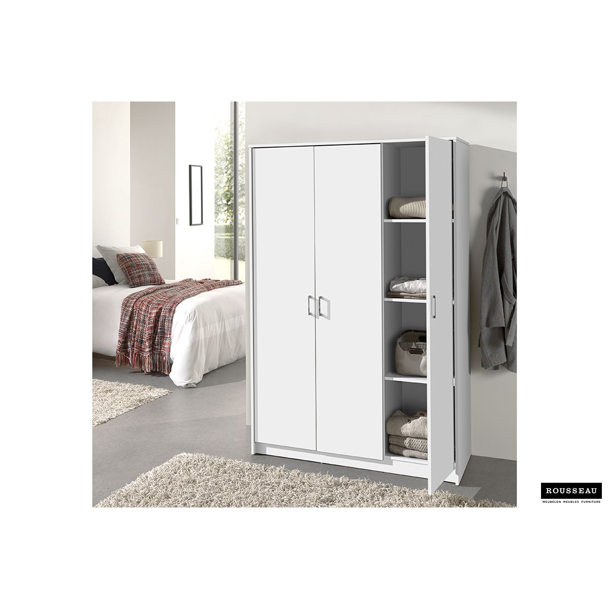 Kleerkast 'Ray' 3 Doors White (180x120x54cm)